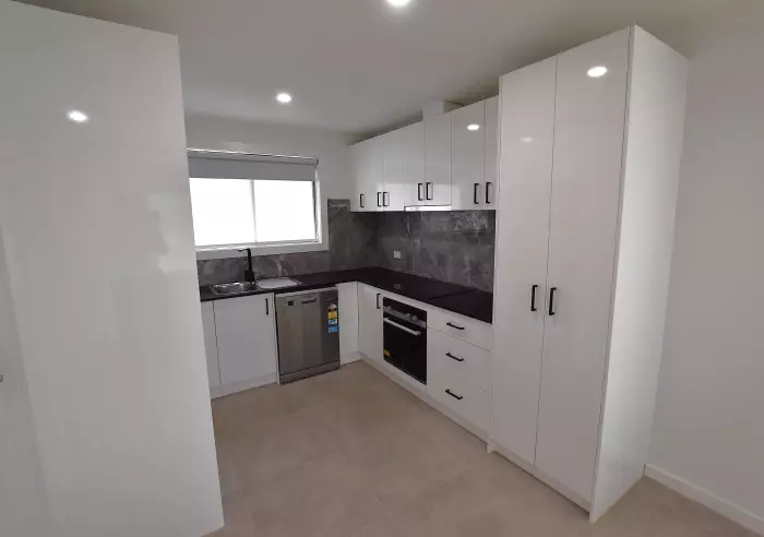 Step inside to a large, light filled living room featuring split system air conditioning and central heating for year round comfort. The open plan kitchen and dining area is perfect for family living, complete with electric cooking and a dishwasher for everyday convenience.