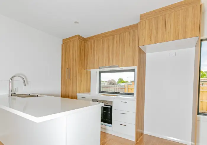 This modern, low maintenance townhouse features an open plan living area with split system heating and cooling.