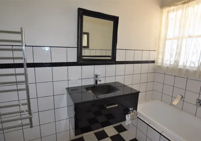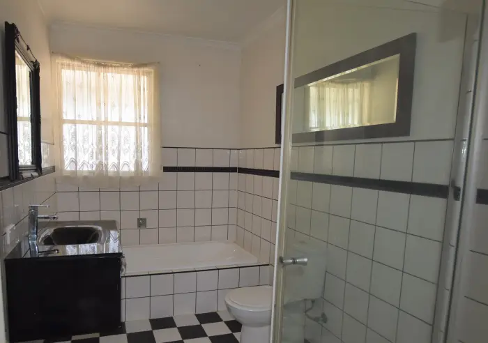 There are three bedrooms, all with built in robes, and a central bathroom featuring both a separate bath and shower.