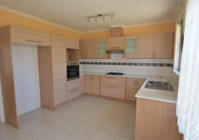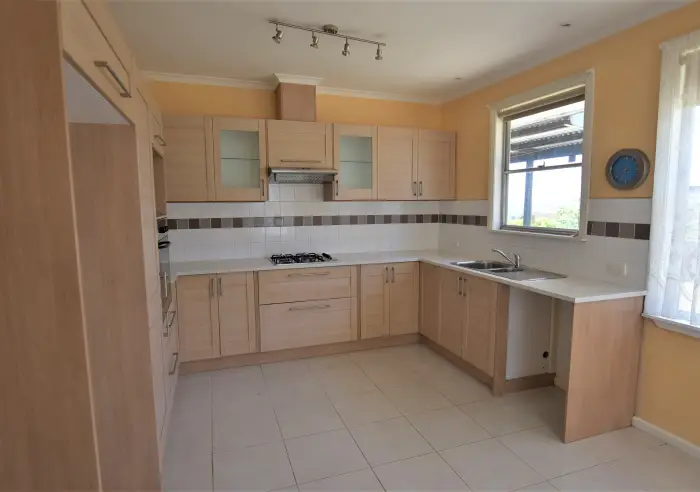 This well maintained family home offers a spacious and functional kitchen with plenty of cupboard space, a gas stove, and electric oven.