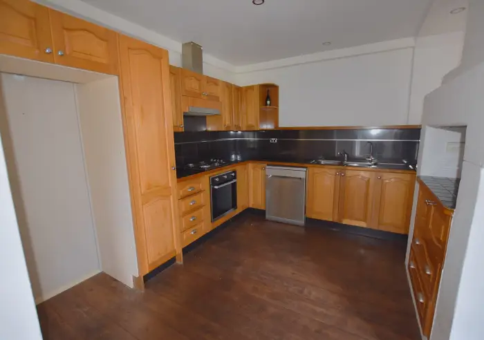 The kitchen is practical and well laid out, with gas cooking and plenty of storage space.